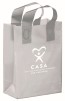 Gift bag is designed with a stylish frosted look, this 8" x 11" with 4" gussets is made from 3 mil film thickness high density plastic. Features include fused soft loop handles for additional strength and a cardboard bottom insert for stability.