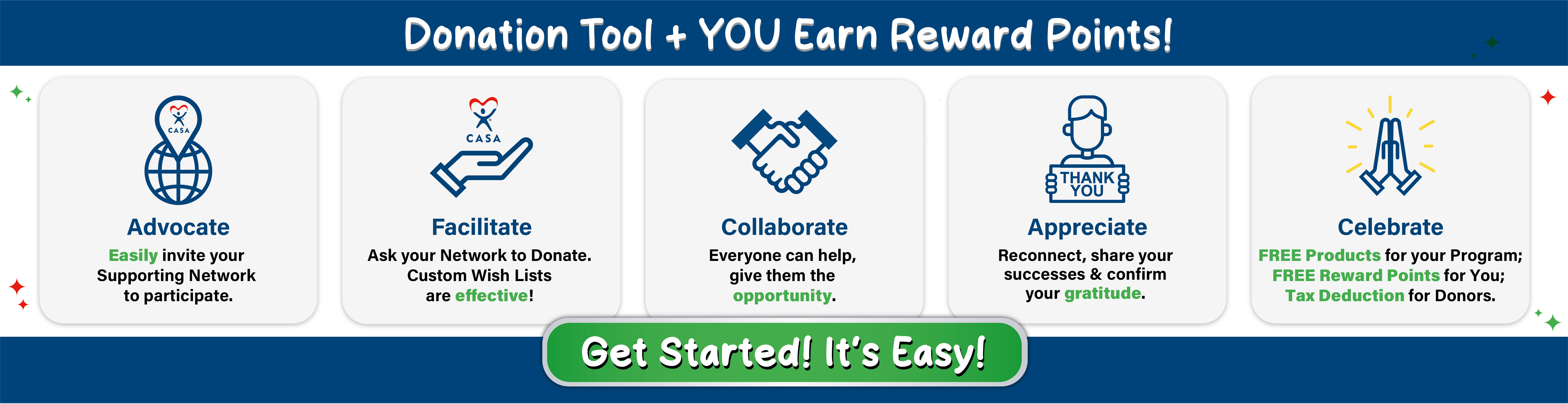 - Your CASA Program receives the branded items needed for awareness, recognition and retention.